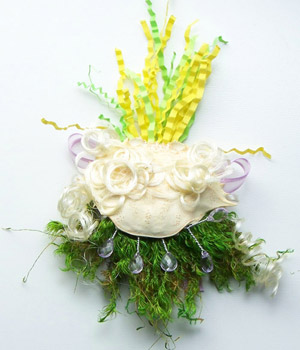 If you live inland, crab shells can be found in the frozen aisle of grocery stores, sold as stuffed crab; cook and eat the filling first and wash the shell thoroughly with dish detergent. Moss: Untwist flower pick and bend the strands into a pleasing shape. Wrap the bare end of the wire securely around your hunk of moss to help keep the moss from shedding. Make sure the decorations (beads, etc) are low enough to show below the crab shell. Liberally apply hot glue and apply to the inside of the shell. Grass: Tie a small bunch of Easter grass together with a bit of ribbon. Smash it flat so that it won't make the merkin stick out weird when worn. Glue the bunch of grass onto the back of your merkin. Buttons and Bows: Twist a small piece of ribbon into a pleasing shape. Put a dot of hot glue onto one upper corner of the back of the merkin, add the ribbon, and top with a button. Pretty! Repeat on the other upper corner. Hair and Other Doo-dads: Glue some doll hair onto the front of the crab shell. Decorate as you wish, with other random bits of craft-goodies you happen to have. Wearing: Measure a length of ribbon or fishing line long enough to go around your waist and tie through the ribbon loops. Adjust as necessary. About