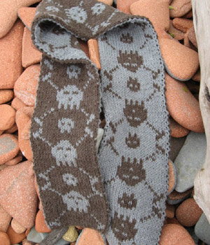 On the final repeat, omit the purple stitches in lines 24, 25, and 25 of the chart (so that you do not have the teeth of a small skull at the end of your scarf).