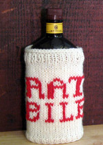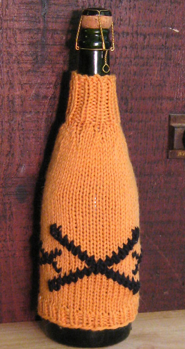 Because I am a crafty bugger I decided to expand the idea and knit a selection of Hoochie Cozies. Besides, booze bottles deserve their own Hallowe'en costumes, same as anyone.